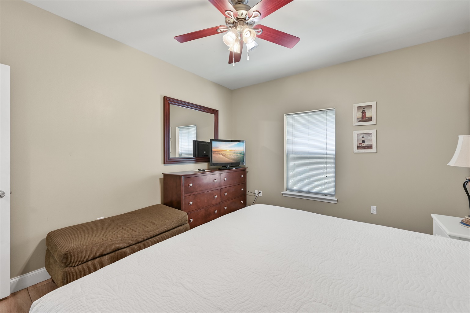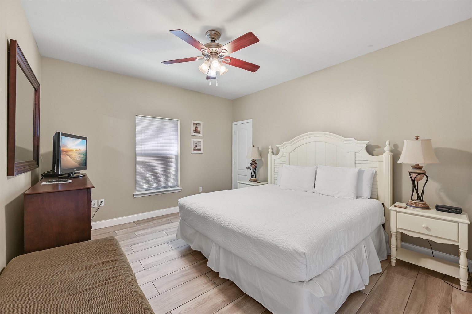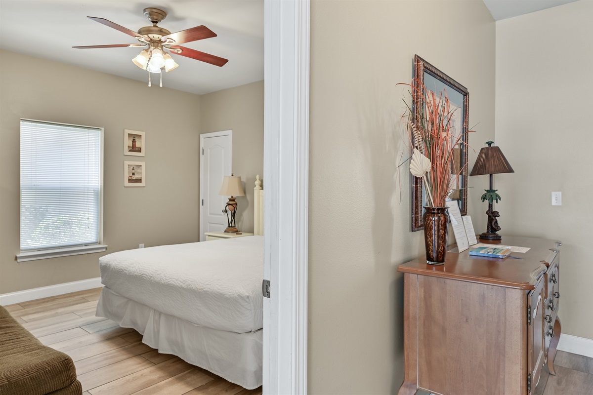 • Bedroom 1 – King bed, TV, dresser & nightstands